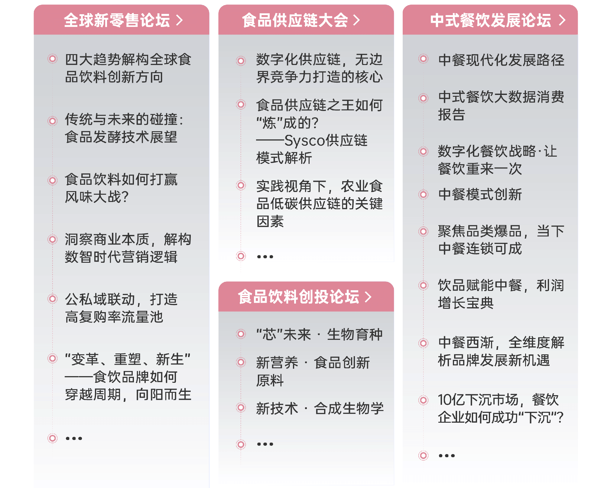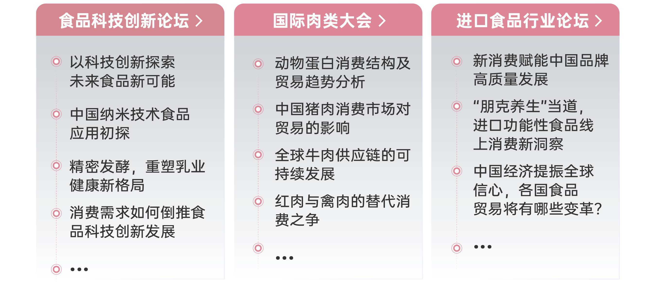 | 作為SIAL世界三大食品展之一,SIAL西雅展(上海)2023年規(guī)模預(yù)計(jì)將達(dá)到18萬平方米、4,500+全球展商、12大主題館、14個(gè)熱點(diǎn)專區(qū)、30萬件展品,同期舉辦的第四屆SIAL世界食品產(chǎn)業(yè)峰會(huì)以“經(jīng)緯世界,擁抱變革”為主題,聚焦新零售、供應(yīng)鏈、肉類、飲品、食品科技、進(jìn)口食品、食品投融資、中餐等食飲行業(yè)熱門話題,9大主題論壇早鳥票火熱搶購中! |