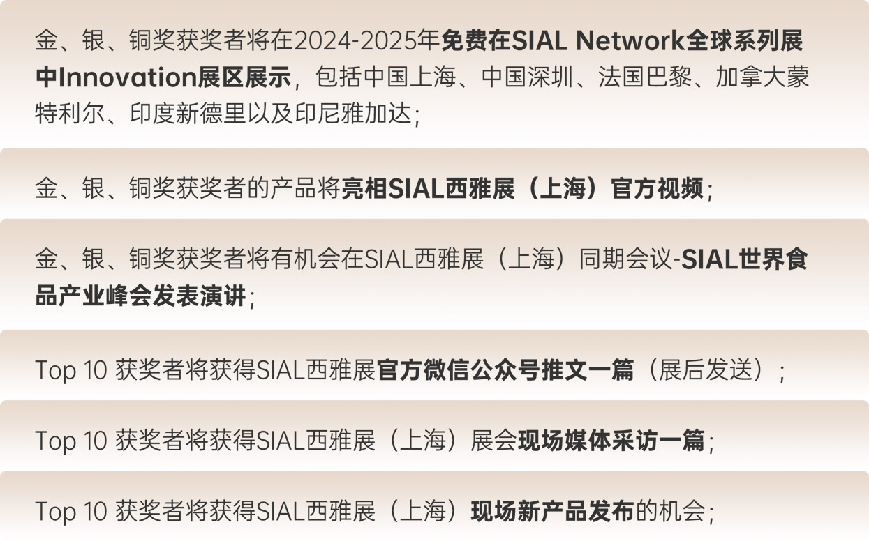 SIAL創(chuàng)新大賽始創(chuàng)于1996年,被譽為全球食飲界“奧斯卡”,國際化標準賽制、全球食品制造商參賽和特邀國際專業(yè)評審團,使得SIAL創(chuàng)新大賽被業(yè)界譽為全球食品飲料創(chuàng)新發(fā)展的風向標。