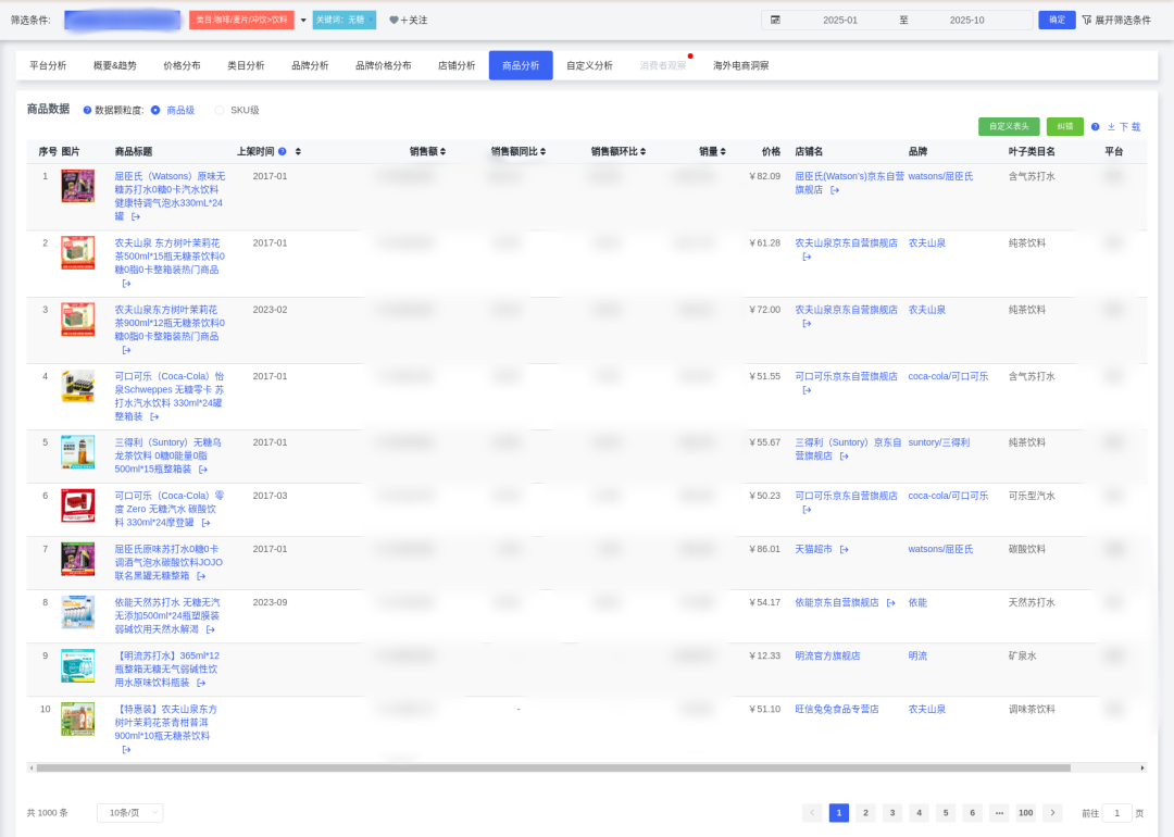 無糖飲料市場呈現(xiàn)顯著增長趨勢,2025年1-10月總銷售額達31.33億元,同比增長9.86%,總銷量7433萬件,同比增長4.34%。市場供給充足,商品數(shù)達61,900個,店鋪數(shù)11,067家,競爭激烈。然而,市場從"野蠻生長"進入"精耕細作"階段,無糖茶品類銷售額同比出現(xiàn)下降,標志著行業(yè)結(jié)構(gòu)性調(diào)整的開始。