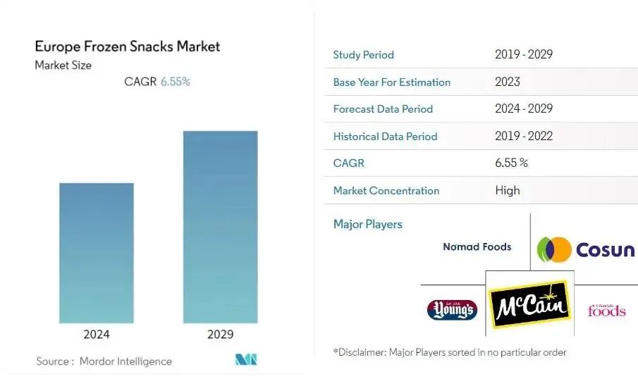從更廣泛的角度來(lái)看這一趨勢(shì),根據(jù)Mordor Intelligence的另一份報(bào)告,在歐洲,冷凍零食市場(chǎng)在2024年至2029年的預(yù)測(cè)期內(nèi)預(yù)計(jì)將以6.55% 的復(fù)合年增長(zhǎng)率增長(zhǎng),不過(guò)該報(bào)告沒(méi)有具體說(shuō)明市場(chǎng)價(jià)值是多少。
