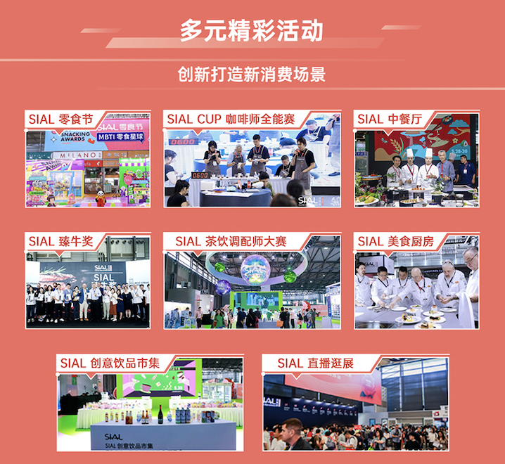 SIAL 西雅展始終以驅(qū)動(dòng)食飲行業(yè)的創(chuàng)新與高質(zhì)量發(fā)展為己任。在“Inspire Food Business”這一價(jià)值主張下,SIAL 西雅展還打造了SIAL INNOVATION創(chuàng)新大賽、SIAL世界食品產(chǎn)業(yè)峰會(huì)、SIAL in China Awards西雅國際金獎(jiǎng)等均具有行業(yè)引領(lǐng)意義的活動(dòng)和峰會(huì)品牌。這些活動(dòng)和峰會(huì),也將為參加SIAL 西雅展的展商和專業(yè)人士帶來行業(yè)創(chuàng)新發(fā)展的前沿動(dòng)態(tài)和趨勢觀察。
