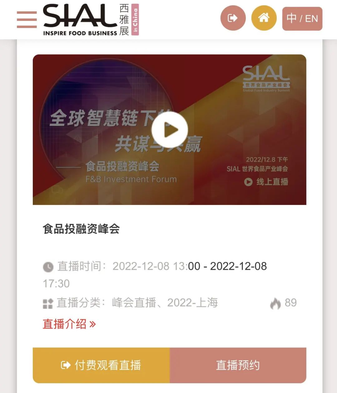 點(diǎn)擊希望觀看的主題論壇下方的“付費(fèi)直播觀看”按鈕,按提示進(jìn)行支付或者兌換優(yōu)惠碼。之后就完成了該場(chǎng)論壇的直播預(yù)約。
